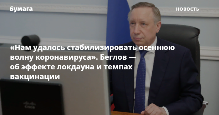 Губернатор Петербурга Александр Беглов заявил, что в городе «удалось стабилизировать осеннюю волну» заболеваемости коронавирусом. Заявление он сделал в ходе обращения к горожанам на «Радио России».