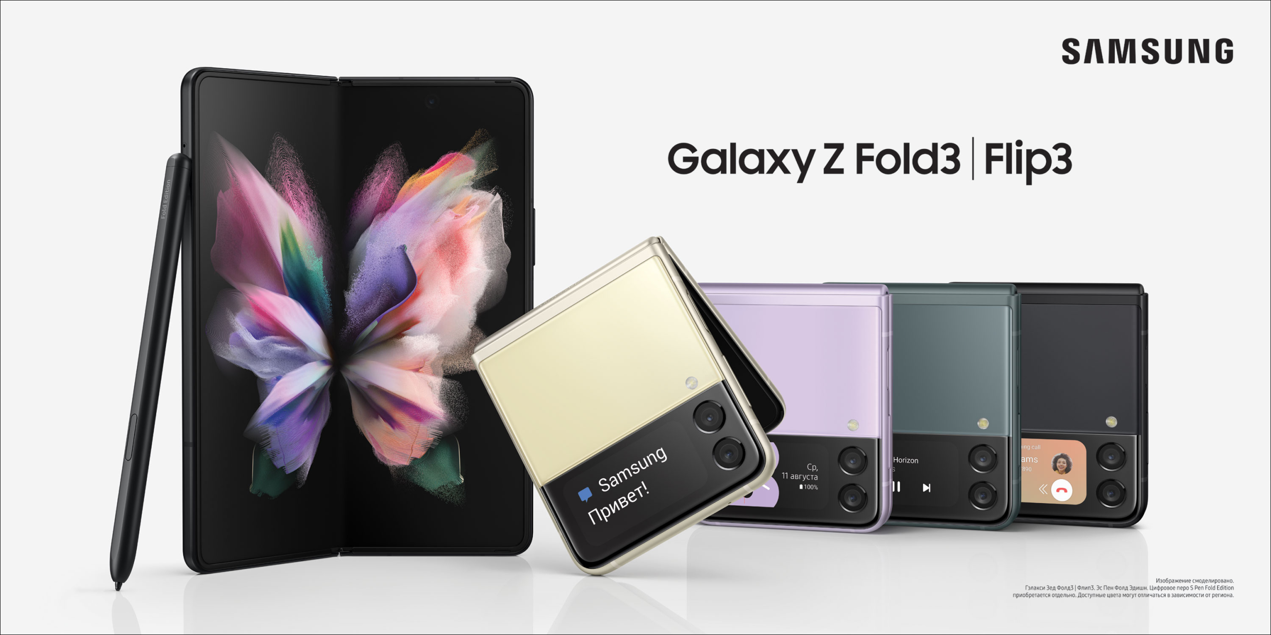 Название модели Galaxy Z Fold3 следует читать по-русски как «Гэлакси Зэд Фолд3», Galaxy Z Flip3 — «Гэлакси Зэд Флип3», а Flex — «Флекс»