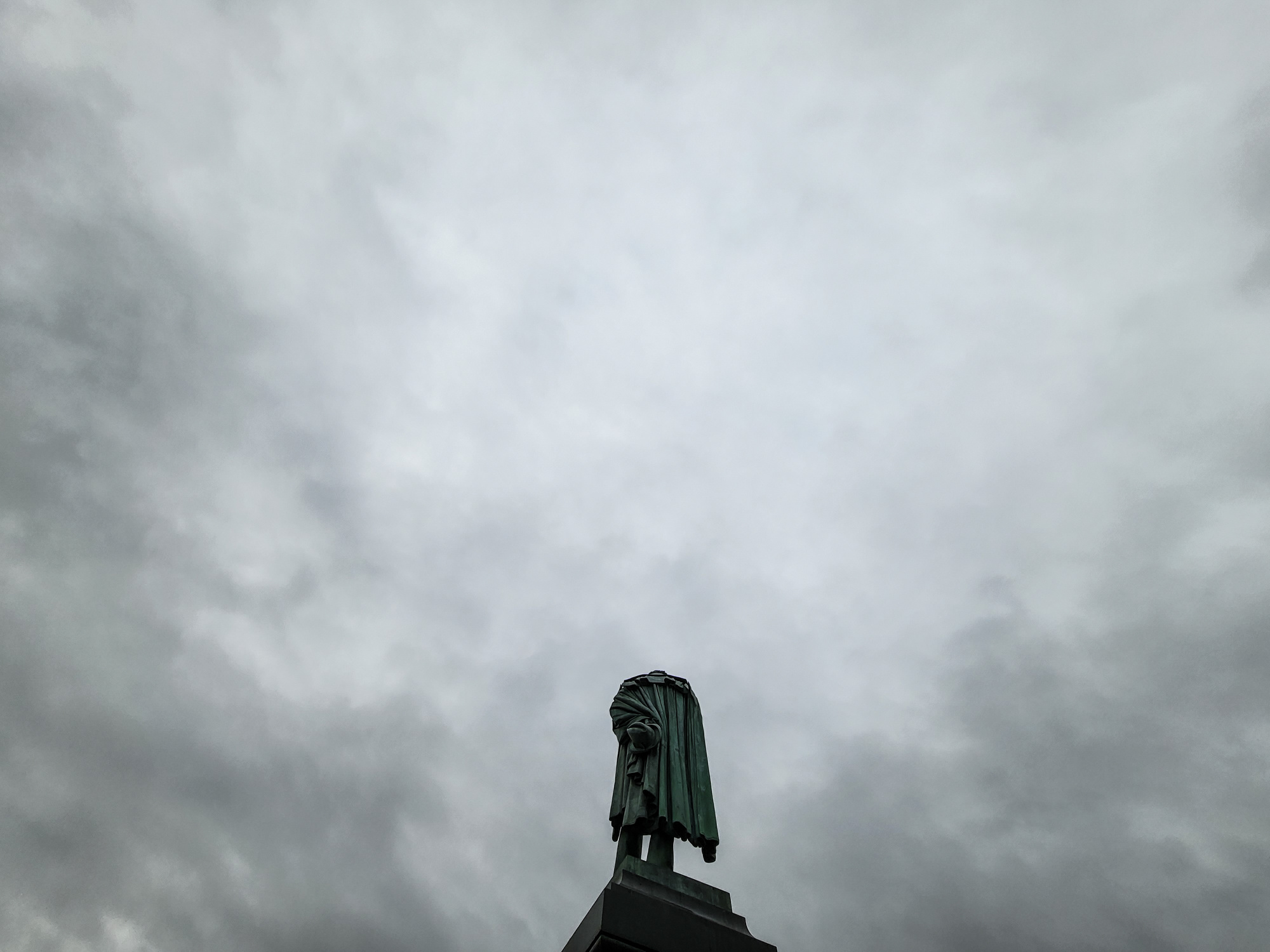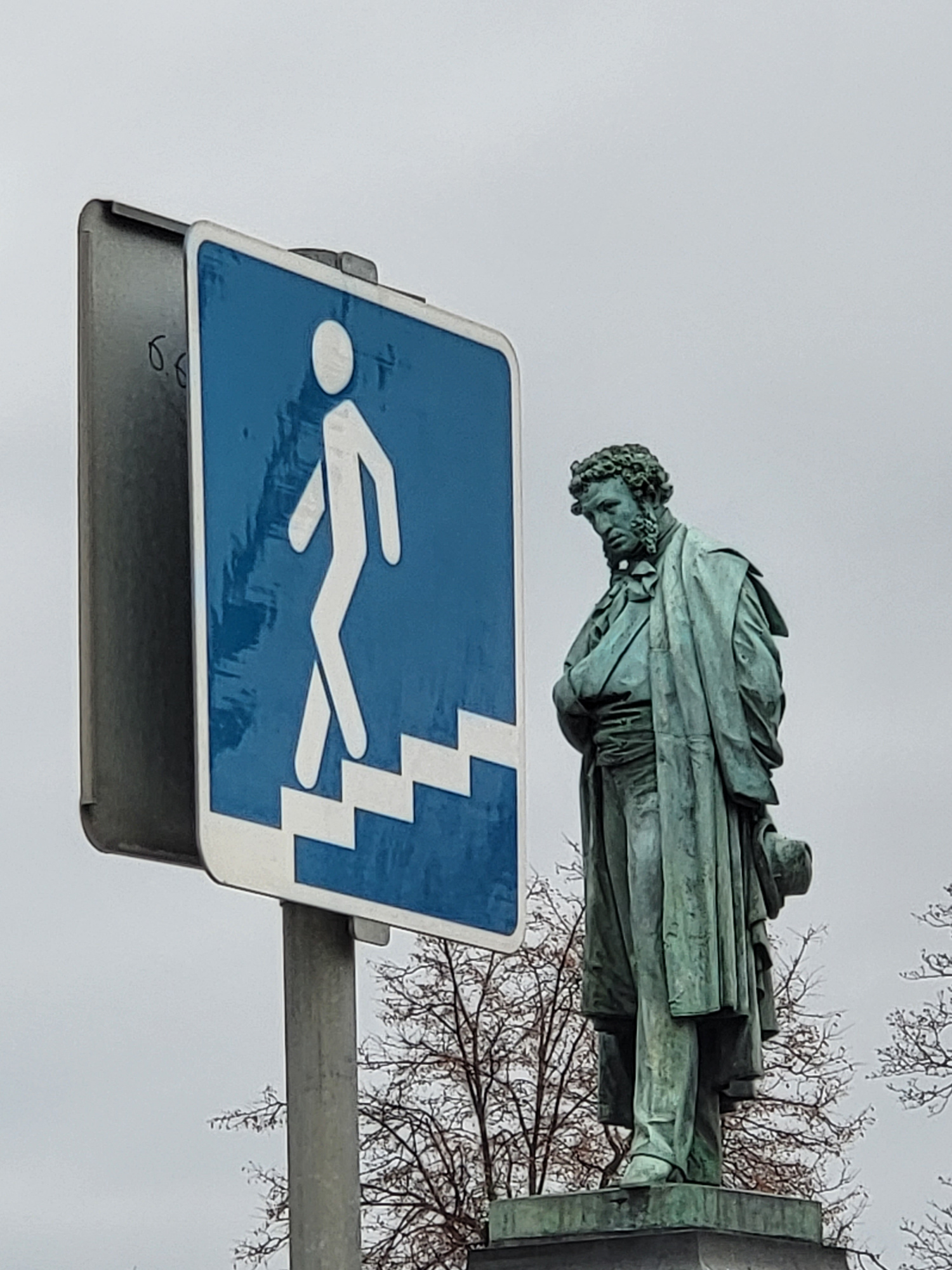 Попробуйте экспериментировать, располагая разные разноразмерные объекты в одном кадре. За счет того, что они разнесены в пространстве, можно поиграть с перспективой и их объемами. В итоге получается, что вроде бы несовместимые по размеру скамейка и 26-этажное здание вполне гармонируют друг с другом, дорожный знак вступает в диалог с памятником, а человек на фоне здания выглядит более величественно и сопоставимо по объему.