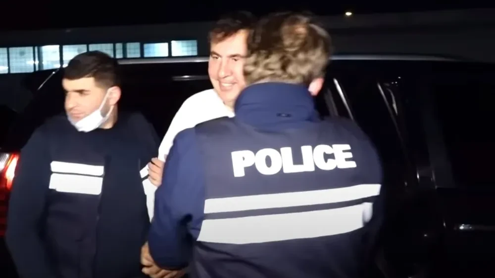 Саакашвили арестовали 1 октября спустя несколько дней после того, как он тайно вернулся в страну накануне выборов. По данным прокуратуры, он пробрался в страну в фуре с молочной продукцией.