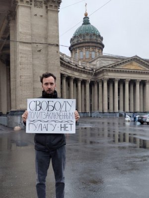 В Петербурге задержали пикетчика с плакатом «Свободу политзаключенным, ГУЛАГу — нет»