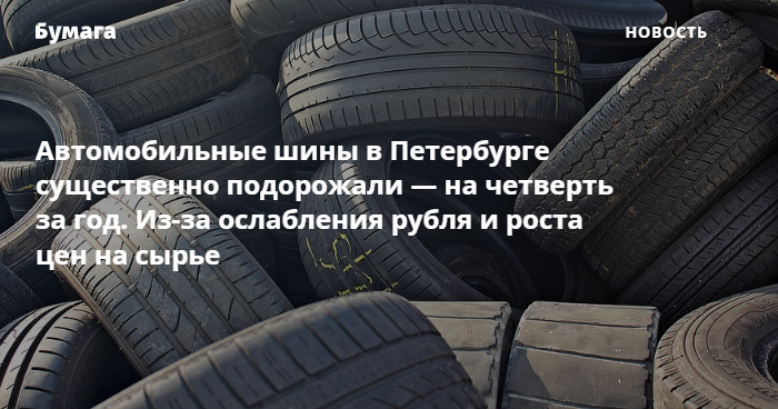 За 2021 год цены на автомобильные шины в Петербурге выросли на 20–25 %. Об этом сообщает портал «Авто.ру», информацию подтверждают эксперты «РБК».