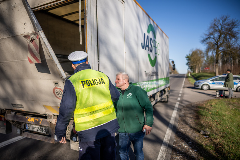 Польский пограничник проверяет грузовик на погранпереходе "Кузница" в связи с миграционным кризисом. Фото: Michael Kappeler / Global Look Press