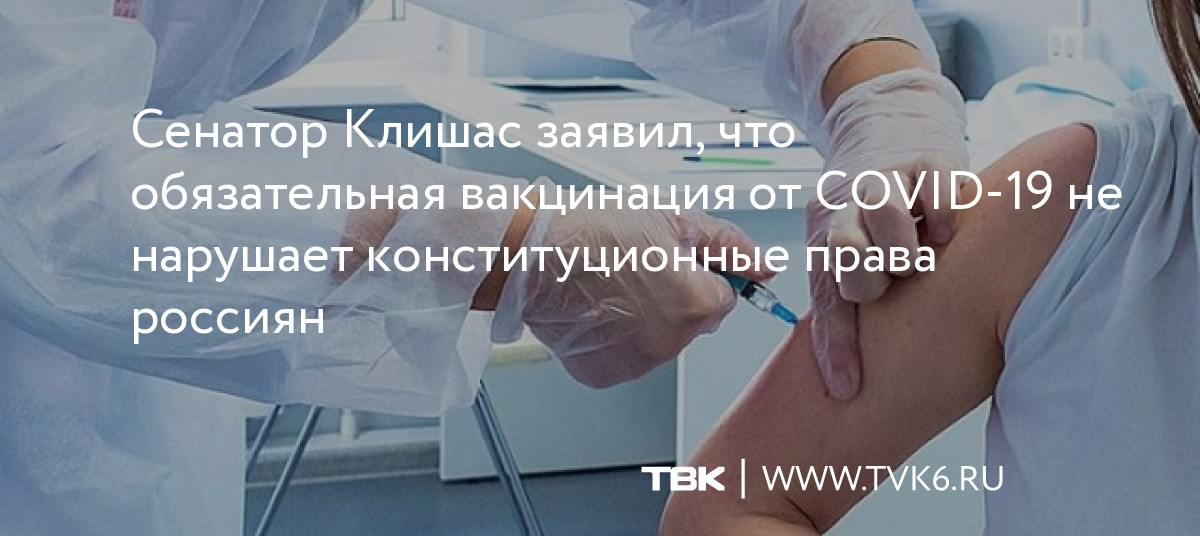 Сенатор Клишас заявил, что обязательная вакцинация от COVID-19 не нарушает конституционные права россиян