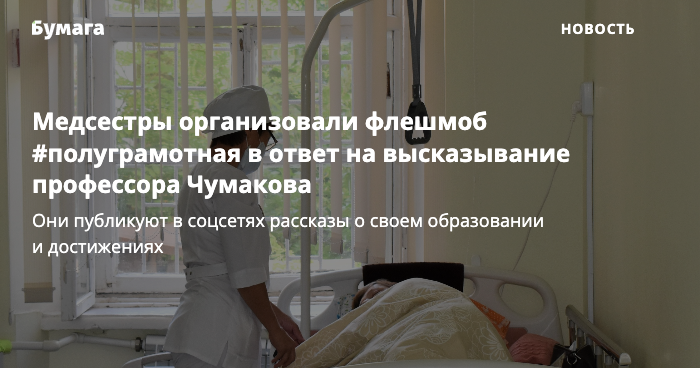 После этого высказывания Ассоциация медицинских сестер России запустила флешмоб #полуграмотная. Медики стали размещать в соцсетях посты о себе, рассказывая про образование, опыт работы и свои достижения.
