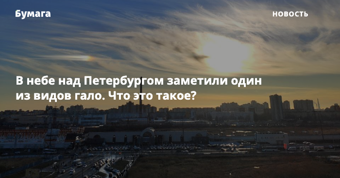 Как объяснил «Бумаге» главный синоптик города Александр Колесов, природное явление, которое сегодня наблюдают петербуржцы, — это гало. По словам Колесова, свет проходит через тонкие облака, преломляется и образует такую подсветку.