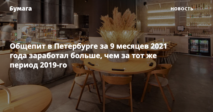 Общепит в Петербурге за 9 месяцев 2021 года заработал больше, чем за тот же период 2019-го