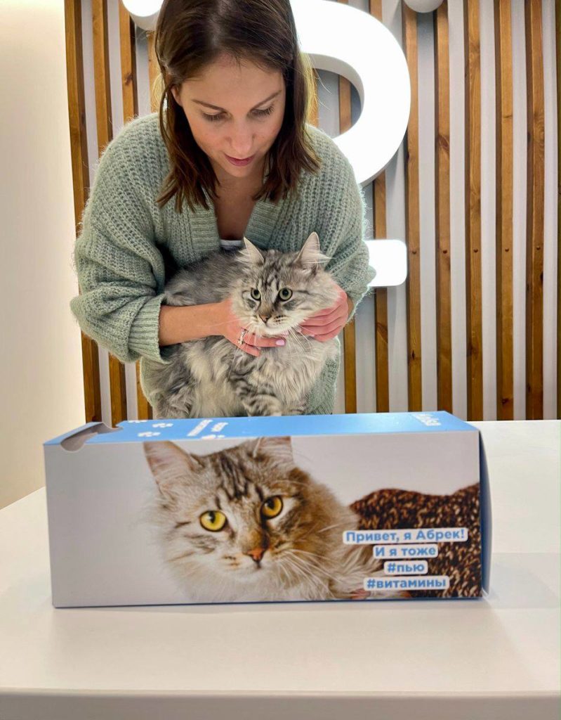 Кот Абрек из центра «Юна» и коробка витаминов от HalsaФото: Сервис Halsa «Витамины помогают не только людям, но и животным поддерживать здоровье. Неправильное или несбалансированное питание может привести к дисбалансу организма, патологическому состоянию кожи и внутренних органов. Именно поэтому ветеринарный врач может назначить для питомца курс витаминов, необходимых для улучшения качества жизни и нормализации работы организма», — рассказала об инициативе зоопсихолог центра «Юна» Яна Шкуренкова.
