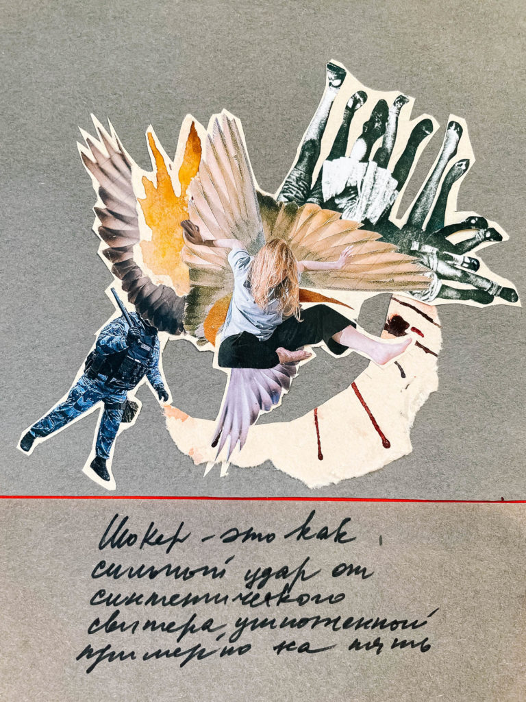 Иллюстрация к истории МарииИллюстрация: Мария Венславская-Грибина для ТД Пока Марию вели к автозаку, ее били электрошокером по бедрам. Только на второй раз она поняла, что происходит, и почувствовала ожог. Она спросила: «Зачем шокером, я же не сопротивляюсь?» Сотрудник ответил: «Я что, похож на шутника?» И снова ударил Марию шокером. «На шутника нет — на садиста», — заметила Мария. И «огребла» четвертый раз. Пока она шла до автозака, мысленно прикидывала, сколько еще ударов выдержит, не потеряв лица.