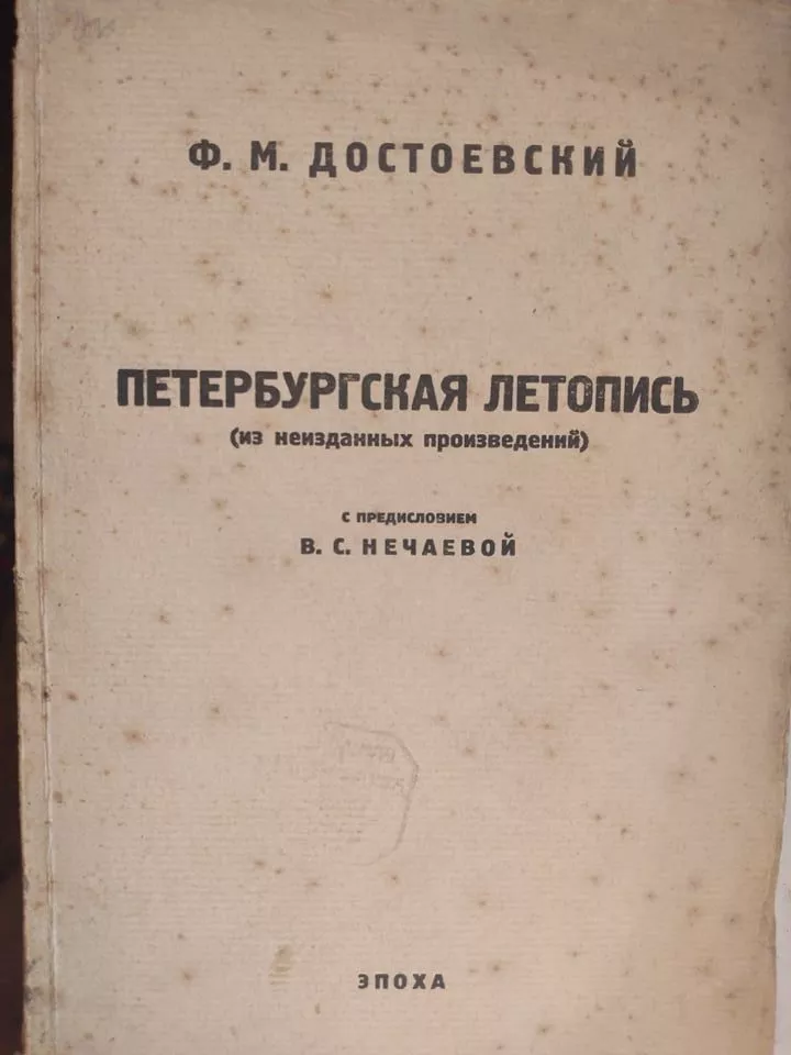 Вера Степановна Нечаева родилась в Москве в семье железнодорожного служащего, происходившего из тверских крестьян. В 1912 году закончила гимназию и поступила на Высшие Женские курсы, где выбрала для себя программу историко-филологического факультета. В 1914–1915 работала в госпитале, затем ухаживала за смертельно больными родителями, скончавшимися в 1916–1917. Зимой 1917 года Вера Нечаева помогает организовать детскую библиотеку в поселке Вешняки (ныне это одноименный район Москвы), а в 1918 году работает учительницей в поселковой школе. Лишь в 1920 году молодая учительница смогла вернуться к научной работе — при поддержке профессора Грузинского Нечаева начинает заниматься изучением творчества Вяземского. В 1922 году, работая в Центрархиве, Нечаева совершает выдающееся научное открытие — обнаруживает целых четыре газетные статьи Достоевского, написанные для «Петербургской летописи» в 1847 году. В 1924 Нечаева становится аспиранткой упоминавшегося мной профессора Сакулина, среди ее преподавателей в аспирантуре — Владимир Фриче и Михаил Петерсон — видный лингвист марровского направления, сын Николая Петерсона, пропагандиста учения Федорова и одного из корреспондентов Достоевского. Оппонентами на защите диссертации должны были выступить Переверзев и будущий академик АН СССР Александр Орлов, однако защита не состоялась из-за тяжело перенесенных родов.