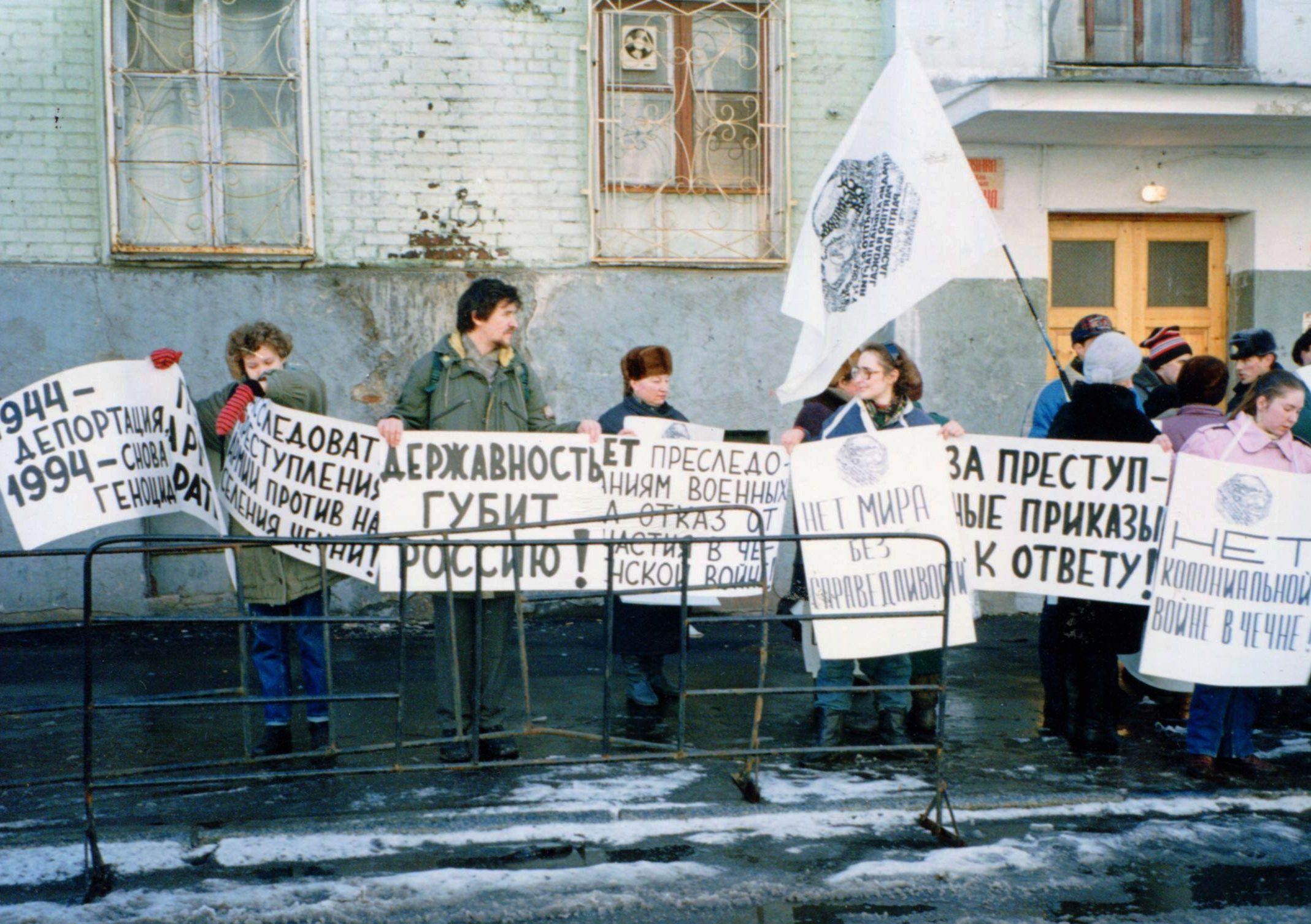 «Мемориал» занимался мониторингом нарушений прав человека и международного гуманитарного права во время Первой чеченской войны. Правозащитный центр в 1995 году организовал в регионе конфликта работу наблюдательной миссии правозащитников под руководством руководителя «Мемориала» Сергея Ковалева. По итогам ее работы организация опубликовала доклад о пытках и издевательствах над задержанными в приемниках-распределителях, где их должны были проверять на причастность к преступлениям и участию в боевых действиях в Чечне.
