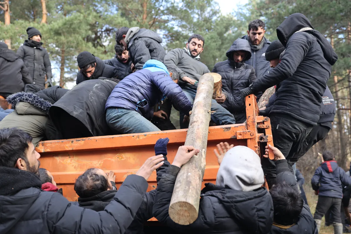 На видео, опубликованных в соцсетях 8 ноября, видно, как сотни человек пешком движутся по обочине шоссе вдоль белорусско-польской границы, рядом с ними — вооруженные силовики в камуфляже. Как заявили РИА «Новости» белорусские пограничники, в группе беженцев у границы с Польшей «несколько тысяч человек». Большинство из них — люди, приехавшие из Ливана, Ирака, Сирии. Мигранты разбили лагерь и пытались пересечь границу. Для ее охраны польская сторона привлекла в том числе военных и полицию. «Началась крупнейшая попытка силового вторжения в Польшу», — заявил министр-координатор спецслужб Польши Станислав Жарын. «Новая газета» подробно рассказывала о гуманитарной катастрофе на границе в материале Ирины Халип.