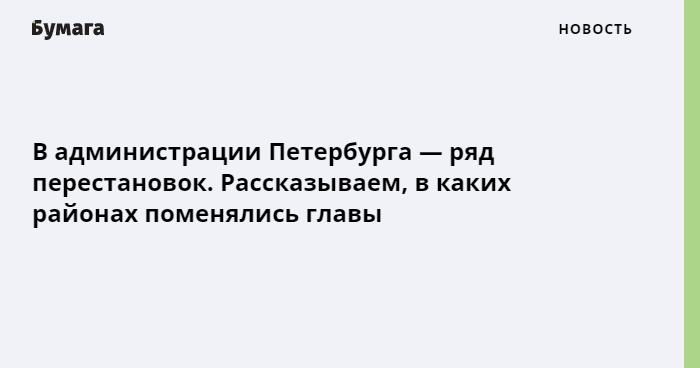 В администрации Петербурга — ряд перестановок. Рассказываем, в каких районах поменялись главы