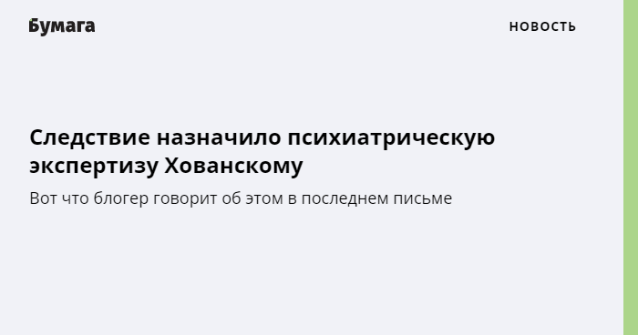 По словам девушки блогера, Хованский опасается, что ему продлят меру пресечения и отправят на лечение. «Всех на домашний переводят, один я за всех сижу, мучаюсь», — говорится в его последнем письме.