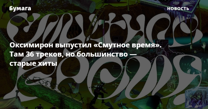 Оксимирон выпустил микстейп «Смутное время». Он содержит 36 треков, большинство из которых — старые хиты.