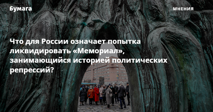 «Бумага» собрала мнения правозащитников и журналистов о том, что для России означает возможная ликвидация «Мемориала», занимающегося историей политических репрессий и защитой прав человека.