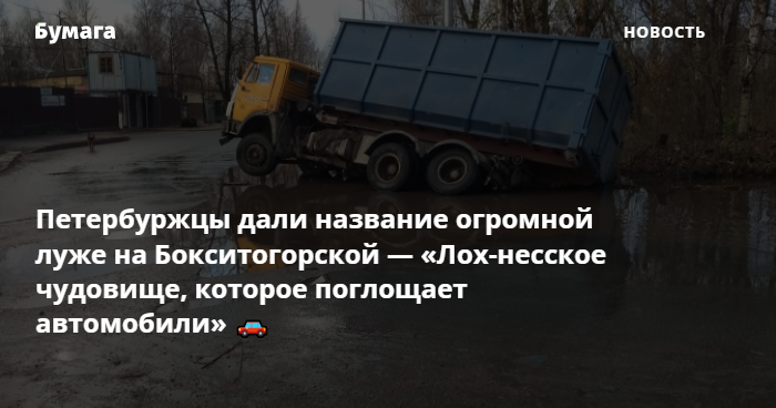 Петербуржцы рассказали о гигантской луже, которая образовалась на Бокситогорской улице в Красногвардейском районе. В соцсетях ей даже дали название «Лох-несское чудовище» — всё потому, что из-за нее страдают автомобили.