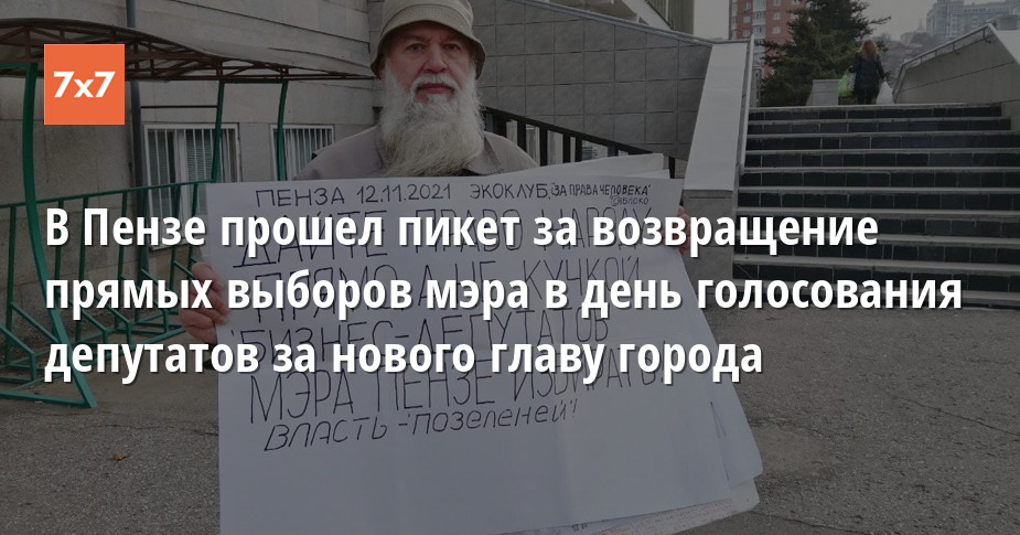 Пензенский активист Юрий Вобликов провел одиночный пикет за возвращение прямых выборов мэра. В этот момент депутаты Пензенской гордумы голосовали за нового главу администрации. Им стал бывший военный Александр Басенко. Вобликов считает, что у людей украли право выбора. Об этом активист рассказал «7х7».
