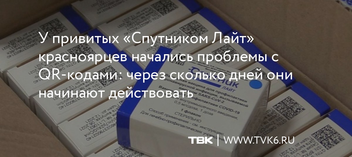 Как «ТВК Красноярск» рассказали в пресс-службе краевого Минздрава, после «Спутника Лайт» QR-код должен приходить в течение суток. Срок может увеличиться до нескольких дней. Это зависит от особенности работы медорганизации, где делали прививку.![]()