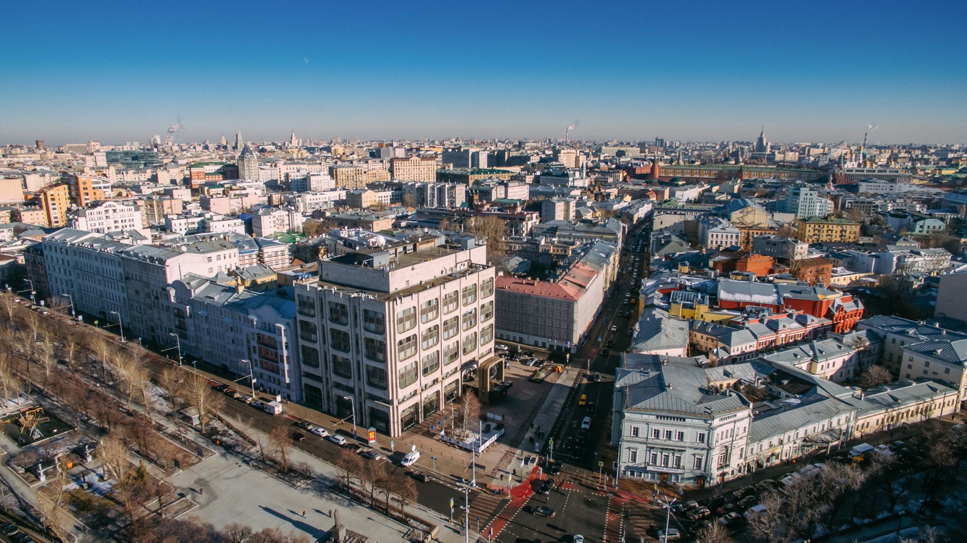 Здание, которое находится в километре от Кремля, возле Никитских ворот, могло быть даже выше. Тот участок, на которым оно стоит, прежде занимал двухэтажный угловой дом — и еще с 1920-х этот ландшафт предлагали изменить. В те годы архитектор и художник Эль Лисицкий вписал сюда один из своих «горизонтальных небоскребов» из числа тех, что, согласно его проекту, должны были разместиться в разных точках на Бульварном кольце. В 1960-е возникла другая идея — о строительстве на этом месте многоэтажного жилого дома. Но в итоге этот участок решили отдать СМИ.