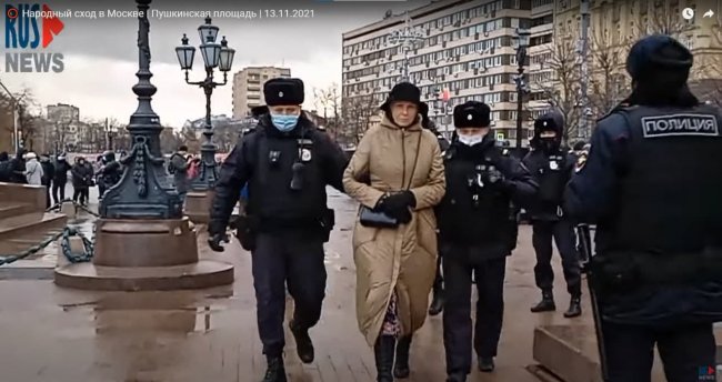 В Москве на Пушкинской площади задержали двоих человек, которые проводили одиночные пикеты. Это попало в трансляцию RUSNews.
