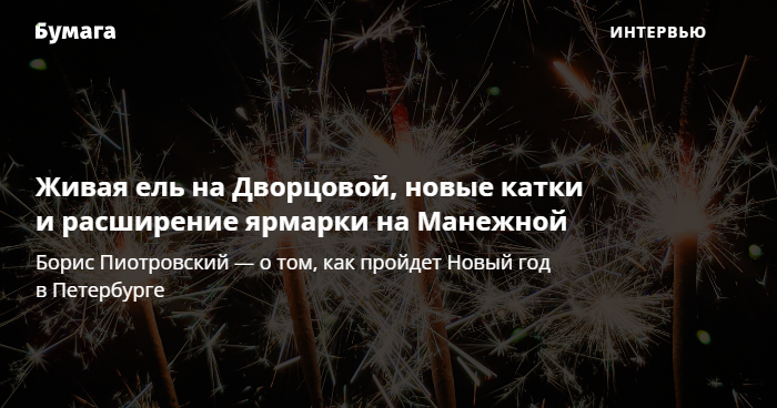 Как в Петербурге будут праздновать Новый год с учетом коронавирусных ограничений? Вице-губернатор по культуре и спорту Борис Пиотровский в прямом эфире рассказал об украшении города, новых катках и расширении ярмарки. «Бумага» публикует его комментарий.