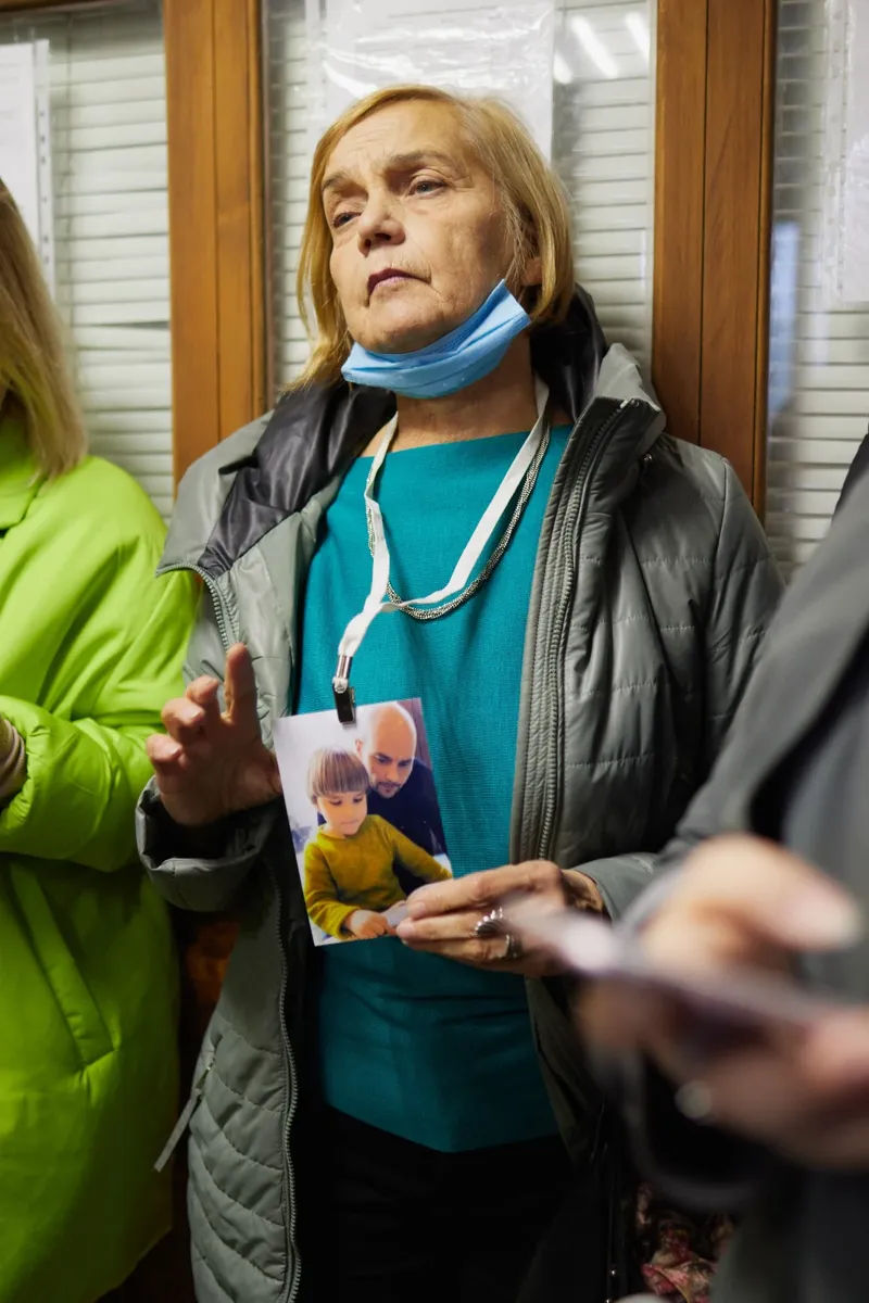 Судебное заседание было назначено на 14:30. Вскоре к ожидающим заседания спустился помощник судьи Наталии Исаковой, которая будет рассматривать дело, и пригласил войти нескольких аккредитованных журналистов. Однако через 10 минут он же, не объясняя причин, попросил прессу покинуть здание. Через некоторое время пустили единственного слушателя — 70-летнюю маму Андрея Пивоварова Раису Григорьевну. На ее шее на ленточке — фотография Андрея с его пятилетним сыном Максимом. По словам Раисы Григорьевны, она переживает, что ее сын полгода не видел своего ребенка, и это одна из немногих возможностей его показать.