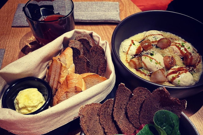 В баре два зала на 38 посадочных мест. Пространство оформила команда BroBuro, там установили открытую кухню, биокамин и большой стол в форме девятки. Более подробную информацию можно найти в инстаграме проекта.