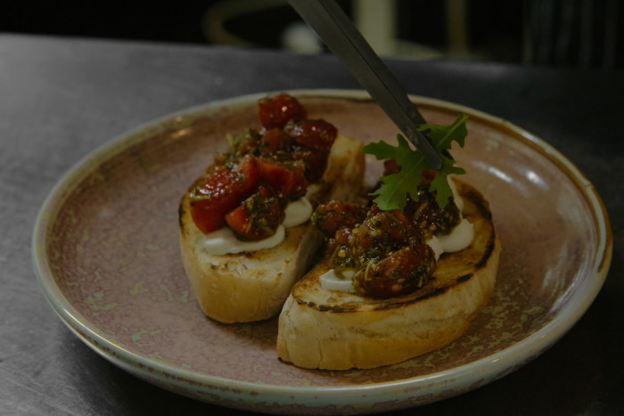 В меню кухни представлены позиции со средиземноморским уклоном: винные закуски и основные блюда. Попробовать можно, к примеру, трюфельный тартар из говядины с муссом из пармезана, орзо с кальмаром и стейк из белокочанной капусты с ореховым соусом.