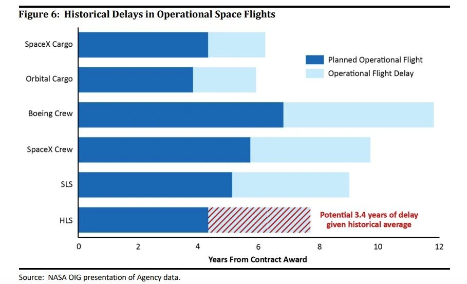 «Учитывая время, которое потребуется на разработку и прохождение испытаний в полном объеме [космического корабля] HLS и новых скафандров, мы считаем, что миссия по высадке астронавтов на Луну, которая, согласно графику NASA, намечена на конец 2024 года, будет перенесена на несколько лет вперед», — сообщает NASA (цитата по «Интерфаксу»).
