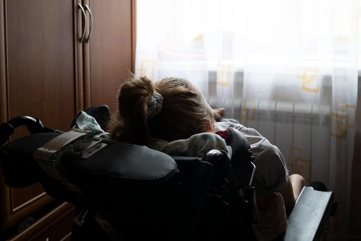 Кристине 17, у нее СМА второго типа. Единственный пейзаж, который она видит из окна кухни, — небольшой двор с упирающейся в гаражи детской площадкой. Вид из комнат — серая стена соседнего дома. Выходят гулять они с родителями нечасто — в подъезде нет пандуса. Трудно любить пейзажи, если не видишь их.