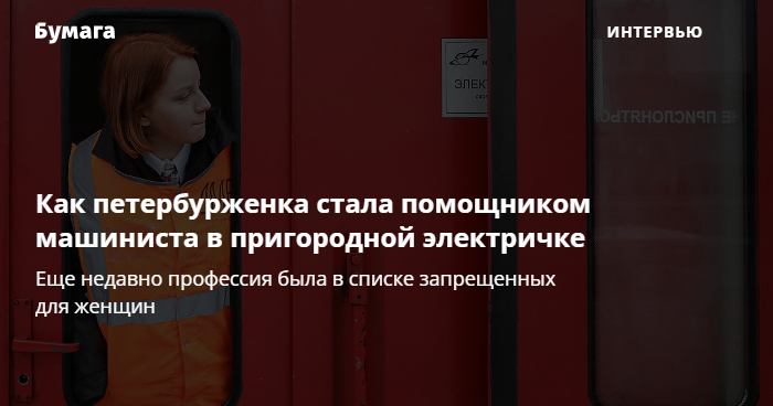 Петербурженка Екатерина Сергеева — помощник машиниста пригородного электропоезда. Еще недавно ее профессия была в списке запрещенных для женщин, но Минтруд пересмотрел перечень. О своей работе девушка рассказывает в блоге, на который подписаны 13 тысяч человек.