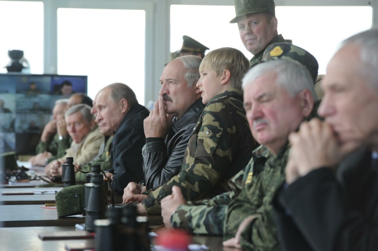 Александр Лукашенко и Владимир Путин во время военных учений, 2013 год
