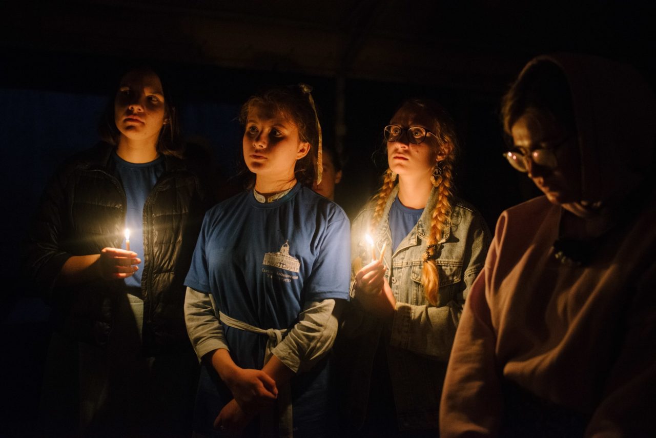 После ужина — беседа у костра. Это могут быть рассказы о временах основания университета, ответы священников на различные вопросы, диспут на заданную тему. Беседа часто заканчивается совместным пением. После костра — вечерняя молитва и чин прощения, когда все насельники просят друг у друга прощения после проведенного вместе дня, это монастырская практика, принятая и переосмысленная в лагере. А потом уже отбой — не спит только комсостав, который планирует следующий день.