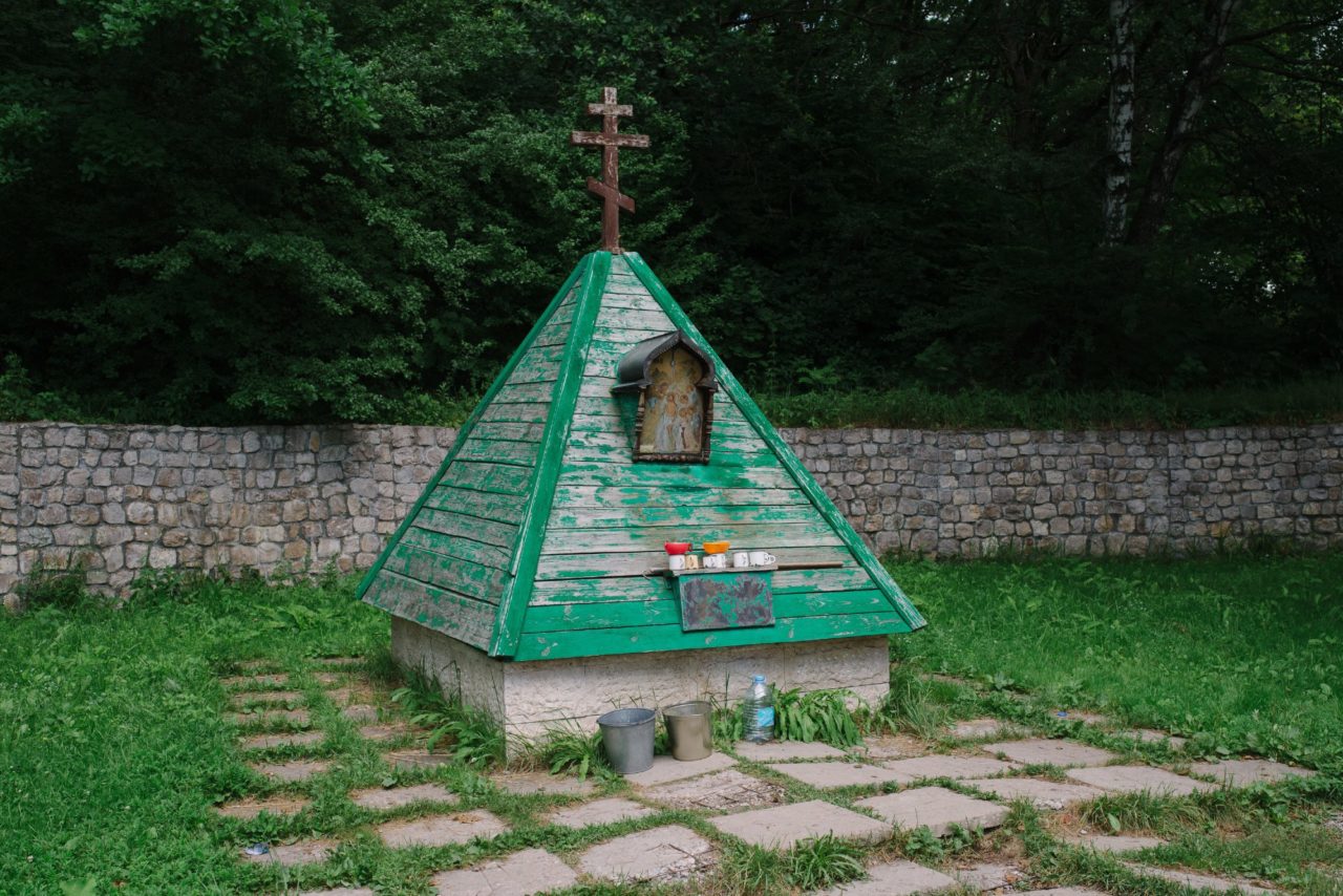 Святой источник. В выходные здесь особенно шумно: приезжает много паломников и туристов. Местные жители тоже нередко приходят сюда. Окрестности Иоанно-Богословского монастыряФото: Сергей Пронин