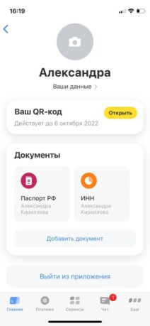 Во вкладке «Документы» приложения банка «Тинькофф» можно хранить различные виртуальные копии паспорта, загранпаспорта, СНИЛС , ИНН, ОМС и других документов. QR-код экспортируется с сайта «Госуслуг».