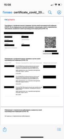 У Минцифры есть специальное приложение про ситуацию с коронавирусом в России — «Госуслуги СТОП Коронавирус». После авторизации через сервис «Госуслуг» на главной странице автоматически появится ваш сертификат о вакцинации — на русском и английском языке.