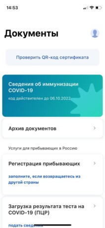 <b>Мнение редактора TJ Саши Кирилловой</b>: Удобный способ — один раз ввёл логин/пароль от «Госуслуг» и больше ничего делать не нужно. В архиве документов можно хранить ещё и сведения о результатах тестов на Covid-19 и антитела. В отличие от приложение «Госуслуг» в нём нет ничего лишнего.Скриншот или PDF-файл