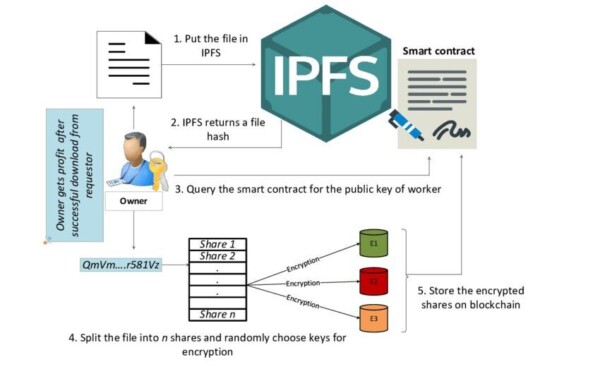 Сеть IPFS работает наподобие торрентов: любой файл при загрузке в неё разрезается на зашифрованные фрагменты, которые расходятся сразу по множеству компьютеров сети. Блокчейн Filecoin гарантирует, что фрагменты файла действительно хранятся в целости на компьютерах участников, и начисляет им за это криптовалюту.