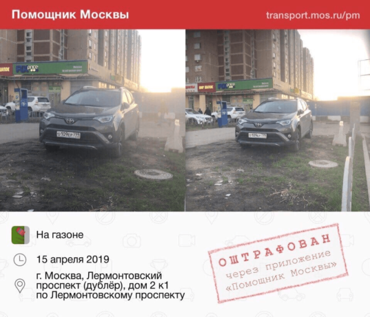 * * *В Москве граждане с 2015 года могут отослать через приложение «Помощник Москвы» снимок нарушения в мэрию, которая выставит штраф за неоплаченную парковку или за стоянку в запрещённом месте. Минюст планировал запретить подобные приложения. В мае 2020 года «Коммерсантъ» выяснил, что мэрия Москвы смогла договориться с ведомством о сохранении в КоАП возможности использования «переносных устройств» для фиксации нарушений.
