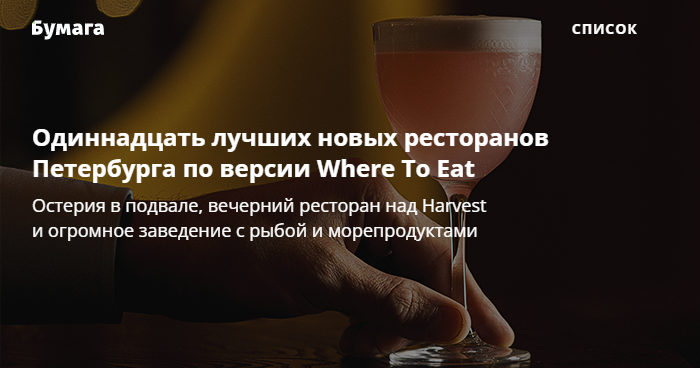 Одиннадцать лучших новых ресторанов Петербурга по версии Where To Eat