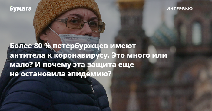 — В правительстве РФ обозначают 80 % как планку коллективного иммунитета. Можно ли сказать, что ваше исследование показывает, что в Петербурге — коллективный иммунитет?
