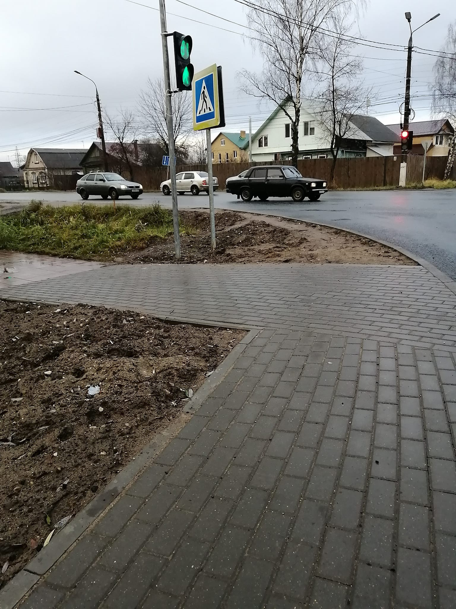 Изначально планировалось их убрать, но как часто бывает, что-то пошло не так. В собственности они оказались не муниципальной, а какой-то другой. В итоге так и оставили. А значит, на этом участке доступности нет, а есть опасность для жизни, ибо передвигаться на коляске придется вдоль дороги.