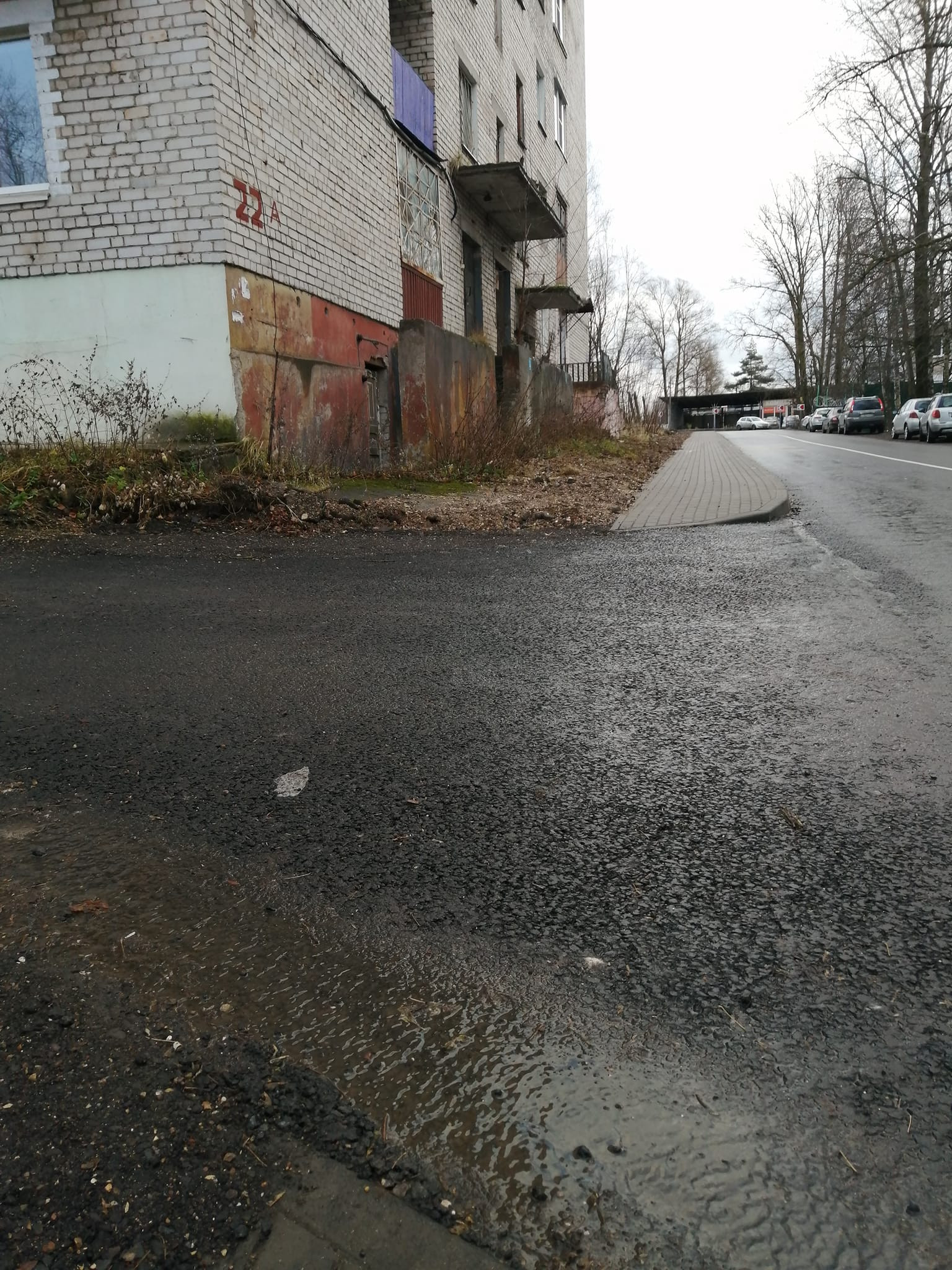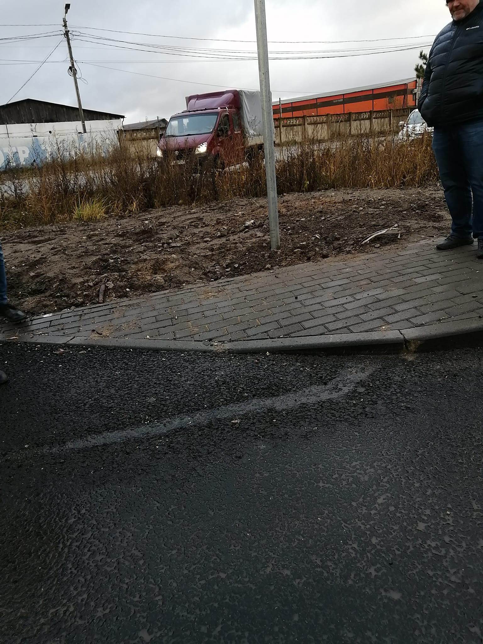 Еще есть в самом начале, у шоссе съезд к ларьку ненормативный. Опять же, изъян проекта.