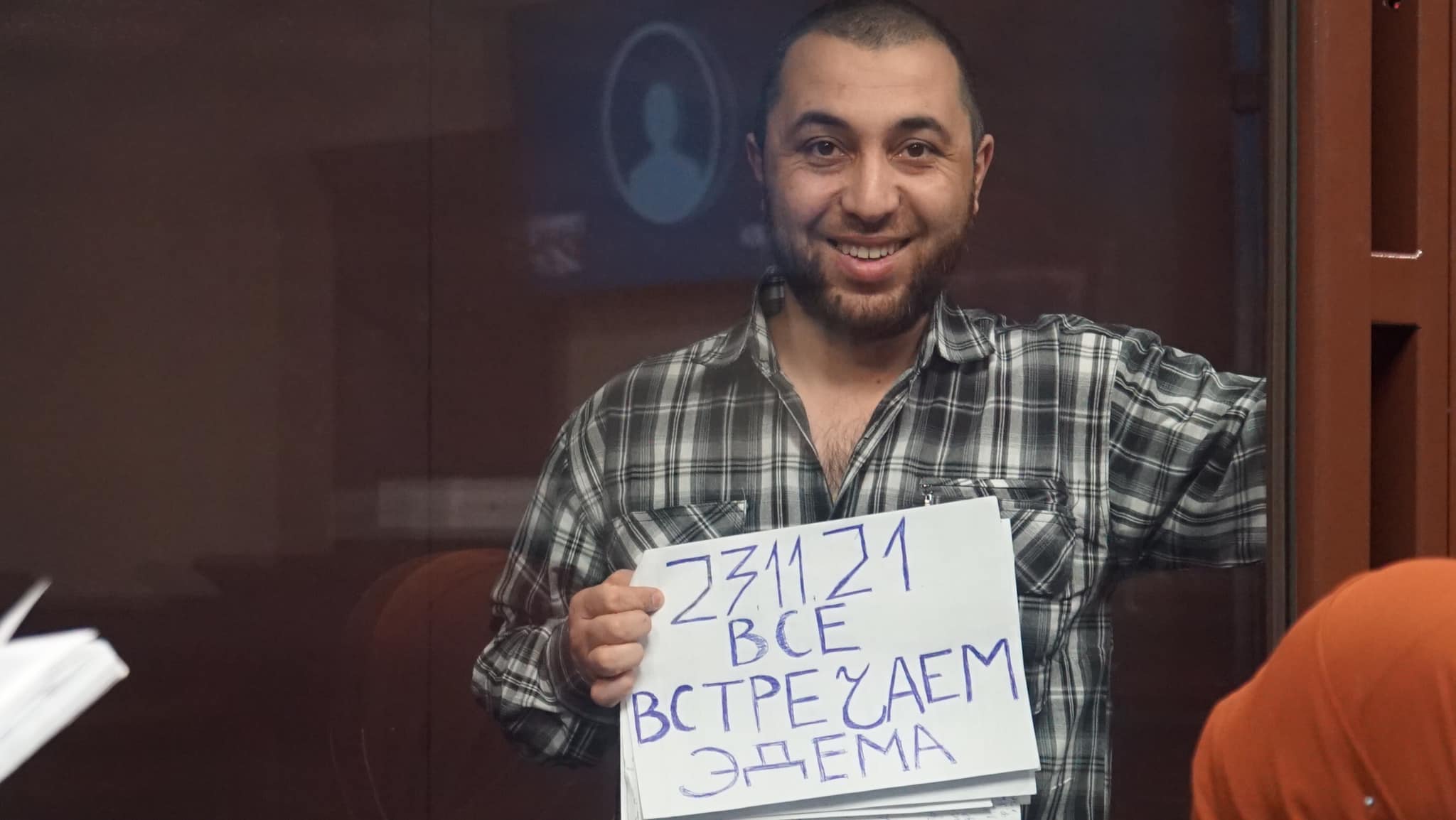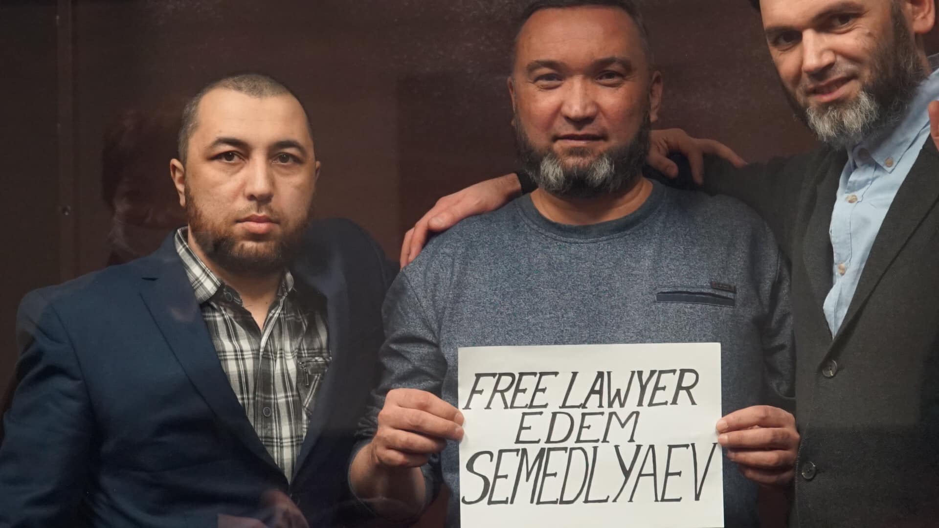 Фигуранты «дел Хизб ут-Тахрир» подняли в российском суде плакаты в поддержку Эдема Семедляева (+фото)