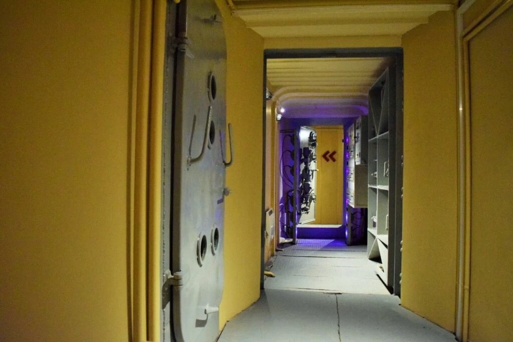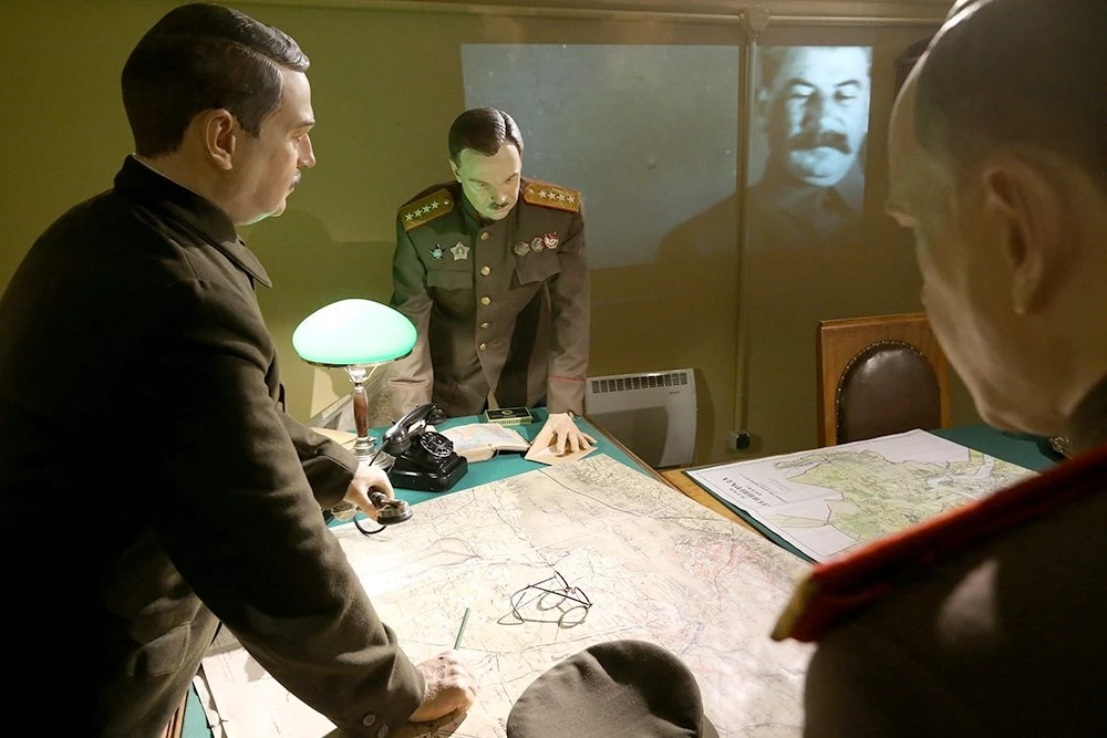 Первая очередь «Бункера», включавшая «подземный коридор», «пункт охраны», «комнату связиста» и «кабинет Жданова» с тремя ростовыми фигурами (Жданова, Жукова и Говорова) открылась в январе 2019-го, а весной 2020-го экспозицию дополнили «буфетной», «медсанчастью», «дезинфекционной» и пр. На дворе уже вовсю свирепствовала пандемия, и губернатора Беглова особенно восхитили ультрафиолетовые лампы — такая система обеззараживания исправно работает до сих пор.