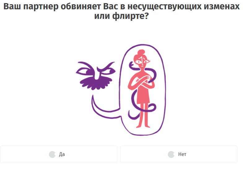 Тест содержит вопросы про психологическое и экономическое насилие, шантаж, то есть неочевидные формы [насилия]. Он позволит не дожидаться тяжелых последствий, а поможет обратиться за помощью на ранних этапах.