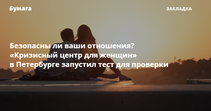 «Кризисный центр для женщин» в Петербурге запустил тест, который поможет оценить уровень угрозы в отношениях. Пользователей просят ответить на вопросы про перепады настроения партнера, запреты и оскорбления. Глава «Кризисного центра» Елена Болюбах рассказала «Бумаге» о сервисе.