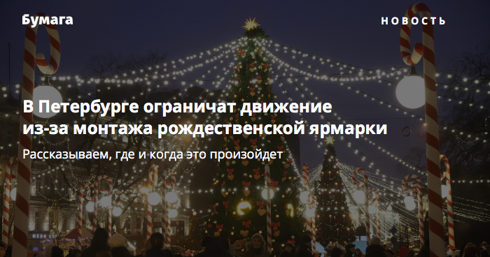 В Петербурге ограничат движение из-за монтажа рождественской ярмарки