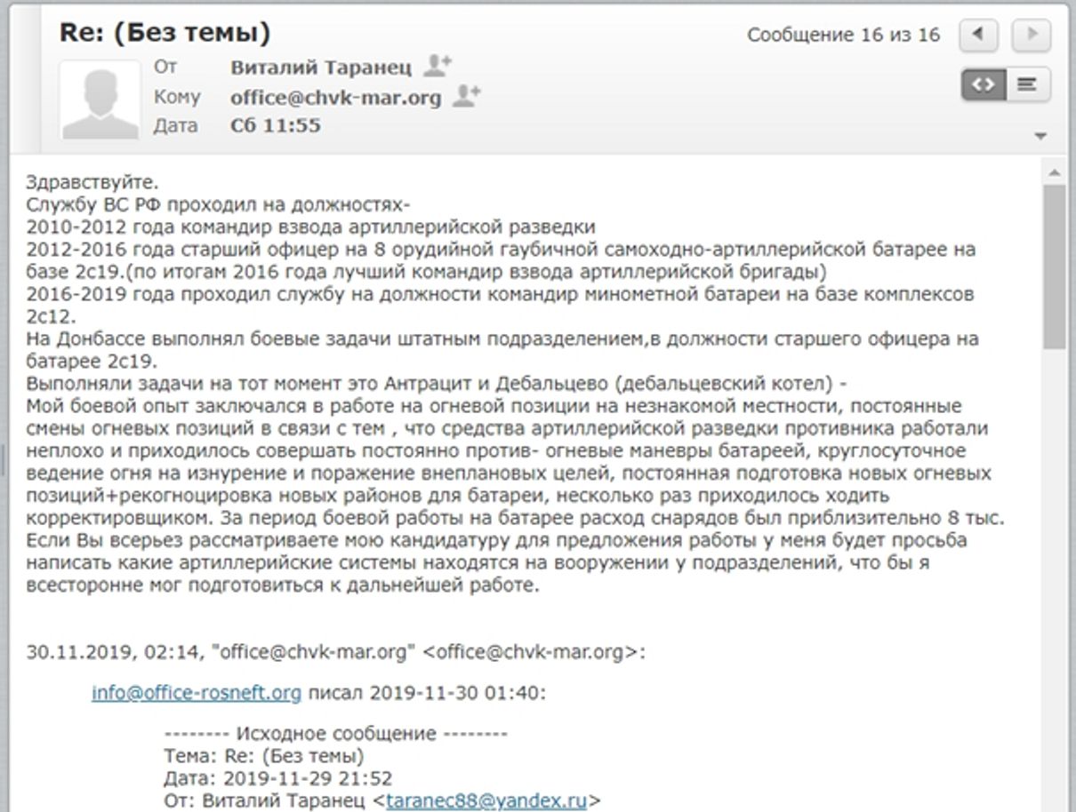 Команда зарегистрировала (опять же через российского регистратора) доменное имя office-rosneft.org, чтобы использовать домен для электронной переписки с кандидатами.